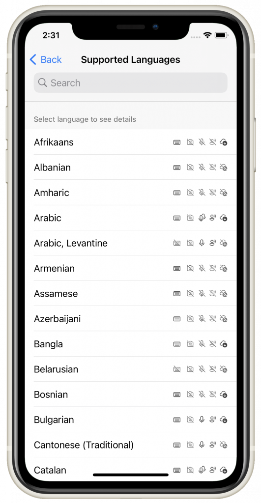 Sammen med denne udgivelse opdaterede vi også brugergrænsefladen, så det er lettere at se, hvilke sprog der er tilgængelige for hver funktion i appen.