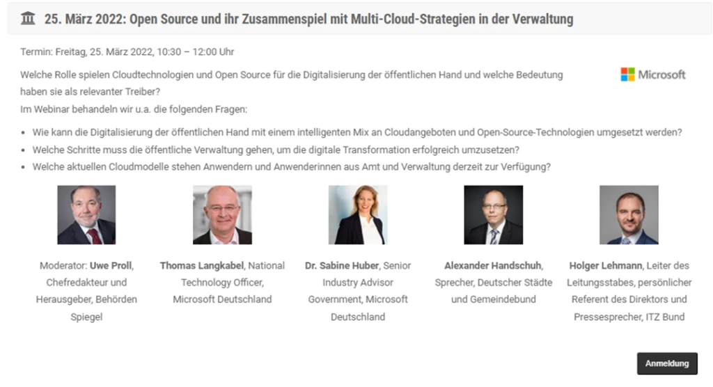 Online-Diskussionsrunde: Open Source und ihr Zusammenspiel mit Multi-Cloud-Strategien in der Verwaltung | 25. März
