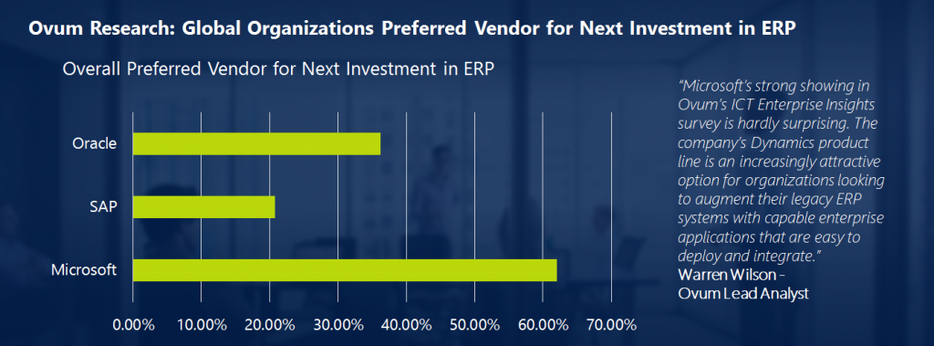 A recent survey by Ovum research reveals a significant trend in the ERP space: Global enterprise organizations overwhelmingly identify Microsoft Dynamics as the preferred vendor for their next ERP investment.