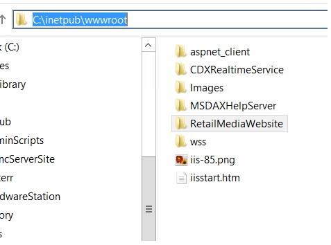 5. Folder = This can be anywhere on the file system. (For this demo I created a folder called RetailMediaWebSite in C:\inetpub\wwwroot