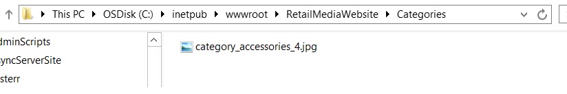 For Categories the image is pretty straight forward,  specify the folder and image name in the AX Window above that matches the file you have in the IIS directory as you see below.  As long as the names match you should be able to resolve the image.