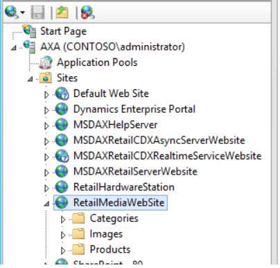 Before we dig into the AX side we first need to setup an Website that will host our Images for MPOS. There really isn’t any major requirements for this other than the ability to pull image files from it.  The easiest and quickest way to do this is to just simply create a new Website in IIS Manager. For our Demonstration I’ve created the IIS website “RetailMediaWebSite” as you can see below.  I do recommend creating this on the same machine that is hosting your Retail Server, however this is not required.  The specifics for this site are as follows: