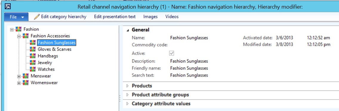 1. Go to Retail > Setup > Category Hierarchies > Retail Channel Navigation Hierarchies