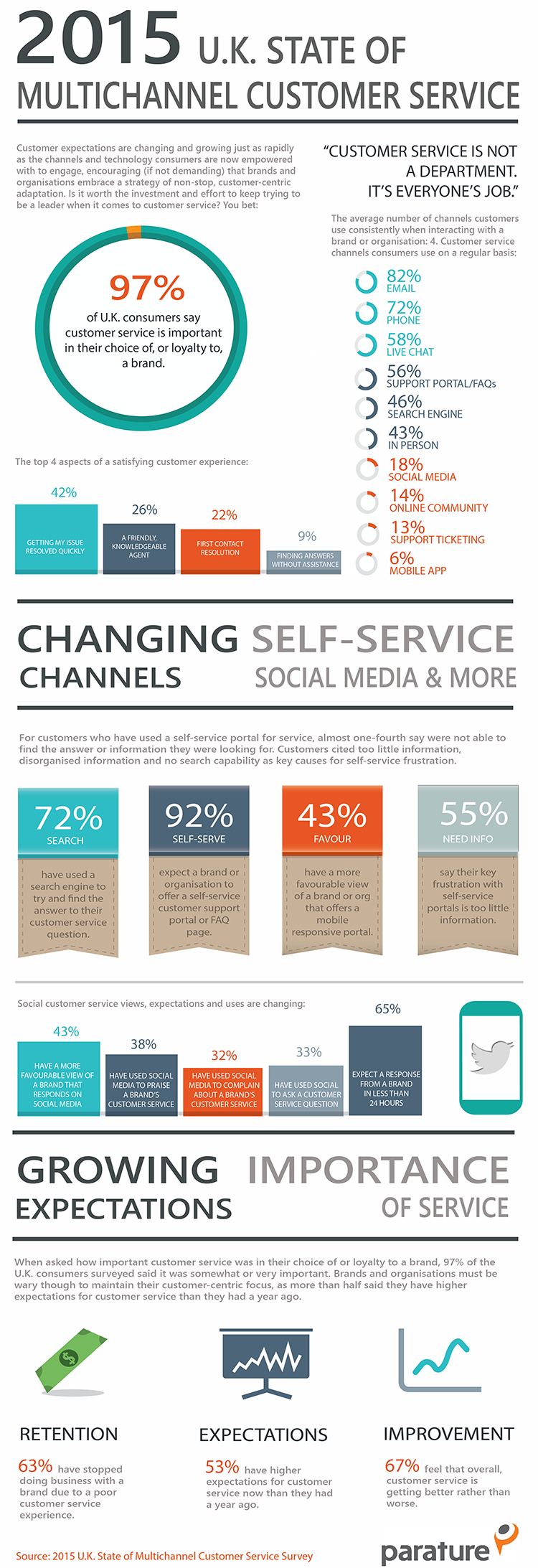 A newly-released 2015 U.K. State of Multichannel Customer Service Report published by Parature, from Microsoft and Microsoft Dynamics CRM highlights key statistics that every customer-centric brand and organization will be interested in, many of which are highlighted in the infographic below. To view more, click here and download the complimentary report.