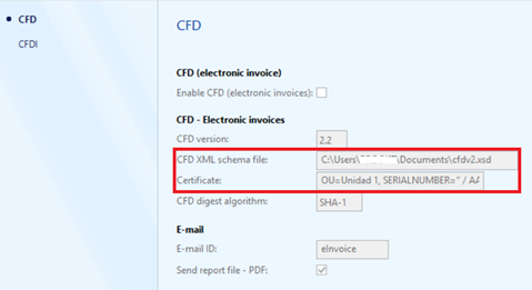 If you have followed all the configuration steps detailed here, have valid certificates, and still see the error message “unable to find the digital certificate” when posting an invoice, you should make sure to have a valid schema file and a valid certificate set up for CFD, even if you are using CFDI, and CFD is disabled.