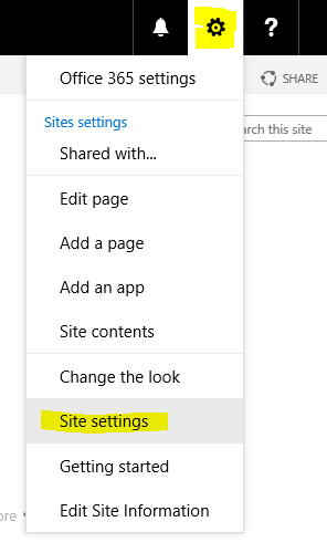 Browse to the site, click on the gear button and select Site settings.