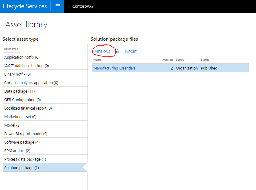 Note that the Version column shows the latest version number of the asset that is in the asset library.