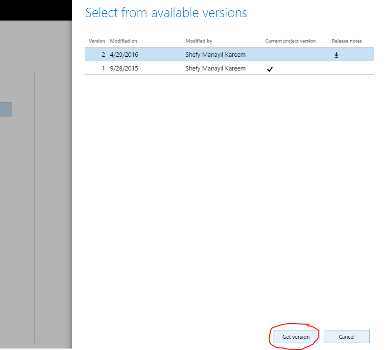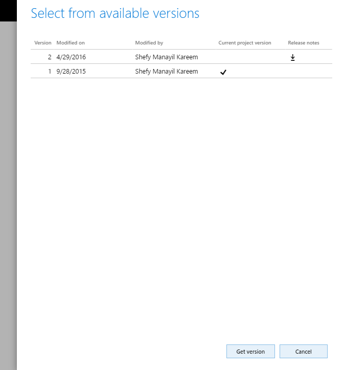 A customer project will have a specific version as you can see below. Now the customer can review your release notes and, if they want, they can get the latest version of the solution.
