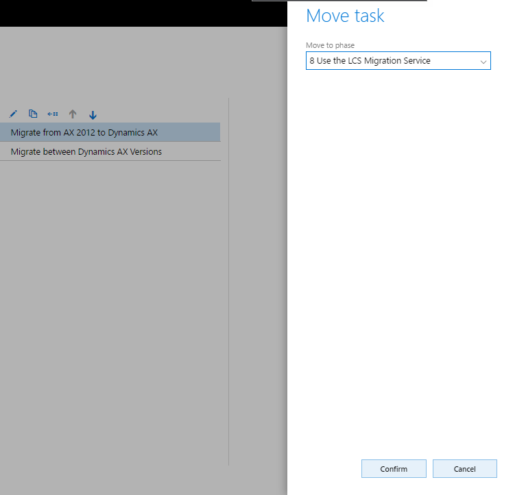 In the Move task slide-out pane, select the phase to which you are moving the task and then click Confirm.