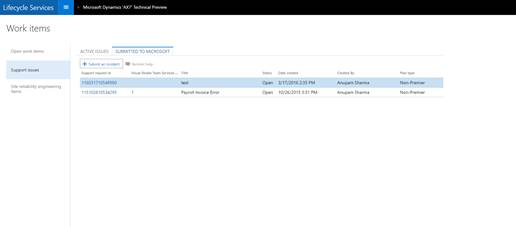 Premier customers can now create Dynamics AX support tickets from Lifecycle Services (LCS). This functionality is available in LCS as a preview for the Dynamics AX 2012 and the newest version of Dynamics AX.