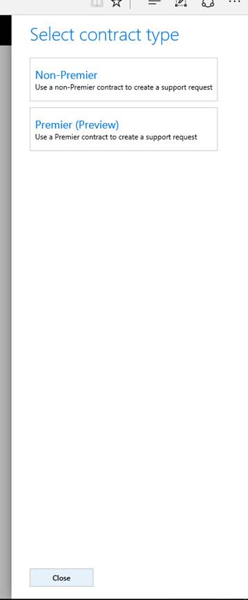Select the contract type, Premier (Preview) as shown in the screenshot below.