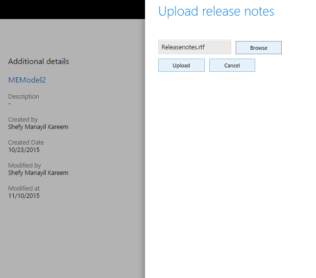 Click Browse to navigate to your release notes file, and then click Upload.