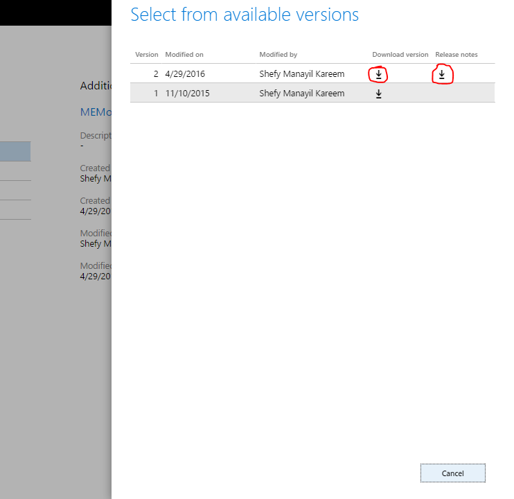 Users can download a specific version by clicking on that version and download the related release notes.