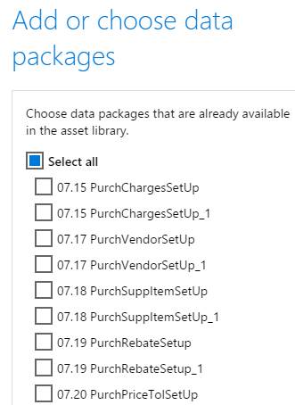 When you create a process data package, you can use the Select all button to add all assets in your asset library to the process data package.