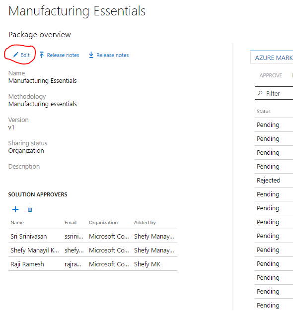 On the Published solutions page, click Edit.