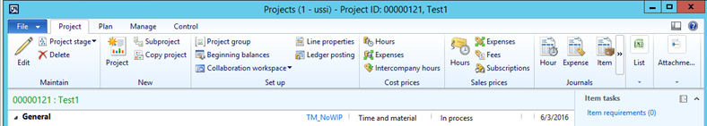 - In the Projects form, click Project -> Maintain -> Project Stage -> In process.