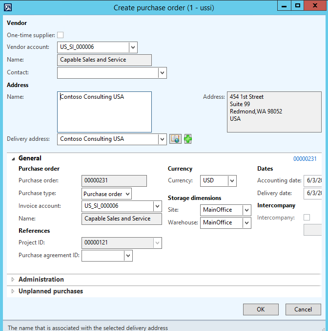 - In the Purchase Order form under Purchase Order Lines fast tab, select ADVERTISING for Procurement Category.