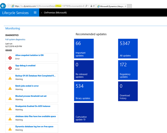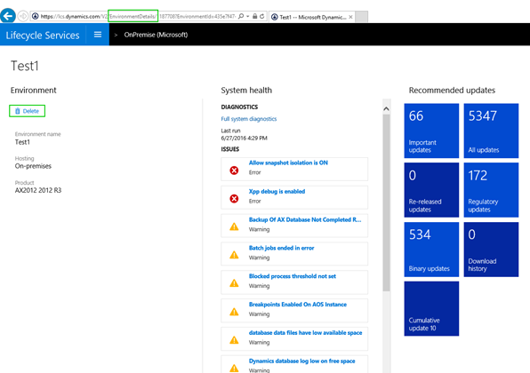 There’s a possibility to add two types of environments to LCS project – On-premise and cloud environments. Cloud environments are added by deploying a machine into Azure. On-premise environment is added by System diagnostics installation. It is fairly easy to delete cloud hosted environment from the system. But it is not possible to delete On-premise environment in the current design. The issue has been reported to LCS development team, and fix should be released in August 2016.