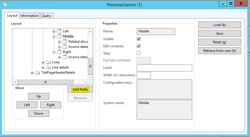- In the Personalization form, click the Add fields button.