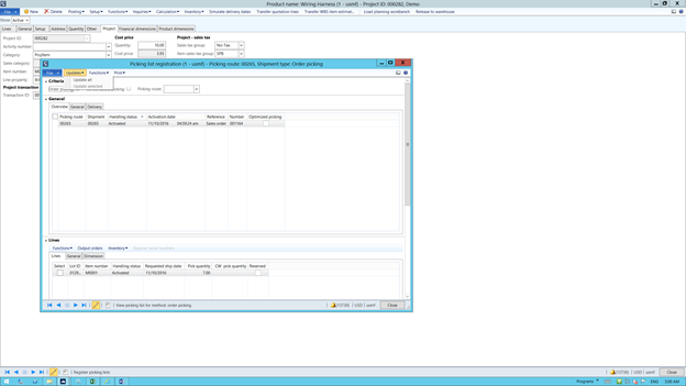 Step2: Make a picking list and packing slip from Item requirements form for part quantity