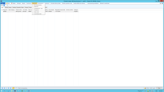 NOTE: Sales order line status is Invoiced as it was invoiced as part of the Item requirement (which is Invoiced after posting the Packing slip)