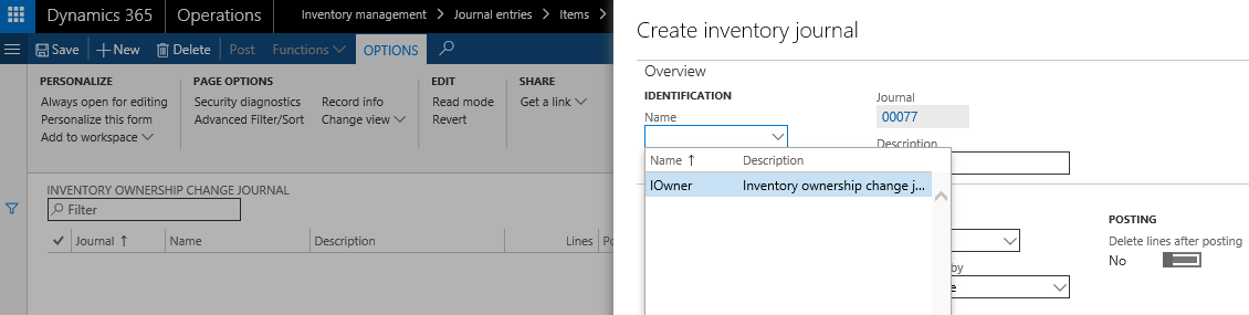 Inventory management > Journal entries > Items > Inventory ownership change