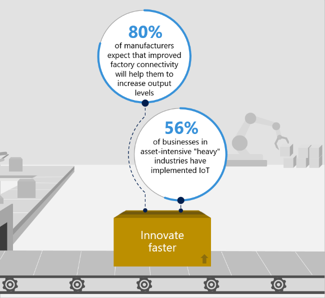 Accelerate innovation for a competitive edge. The best way for manufacturers to pursue innovation is to understand their business more deeply, from customer usage through supply chain sourcing and production. With IoT-enabled parts, assets, and products, manufacturers can gain the insights needed to innovate. Data from connected products and equipment can empower developers, engineers, and technicians to collaborate. For example, teams can identify overengineered or faulty components and track product usage in the field to improve future designs. When a leading information and communication technology company implemented remote monitoring, they decreased time to production as well as accelerated the cycle of innovation using a data-driven approach.