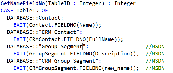 - Handle the lookup to the CRMTable by changing Codeunit 5332 “Lookup CRM Tables” function Lookup and creating a brand new one: LookupCRMGroupSegment