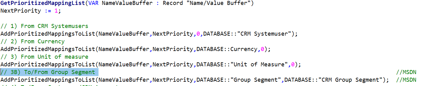 - Set up Defaults to automate the creation of Table/Field mappings and Job Queue automagic enablement. Change the following functions in Codeunit 5334 “CRM Setup Defaults” and create a new one: RestGroupSegmentMapping