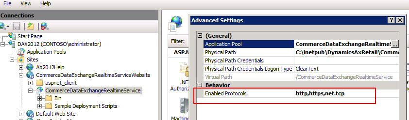 Solution: We have seen a couple instances where the net.tcp binding may not get created by the Powershell installation script. In the IIS Manager, go to your CommerceDataExchangeRealtimServiceWebsite note and right-click and select bindings: