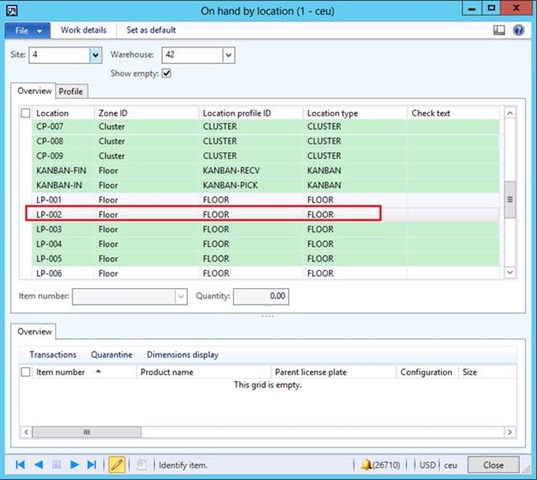 I have assigned the location profile to location LP-002, which has enough room to store the 25 pieces I am about to receive (it is currently empty) and the stocking limit allows up to 5 PL.