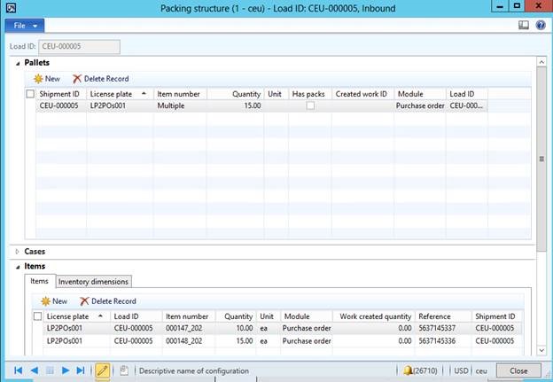 After importing the ASN, a load with the following packing structure will be created.