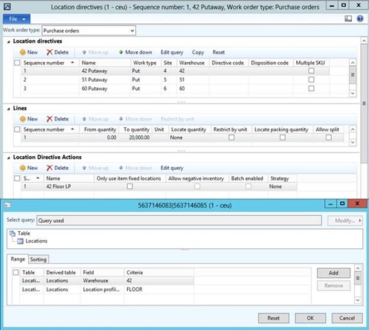 • Use location directives for purchase orders and transfer orders to determine the put away location, and break work into multiple pieces where necessary. This process is not specific to license plate receiving. It is the same for all processes that create put work in the Warehouse management module.