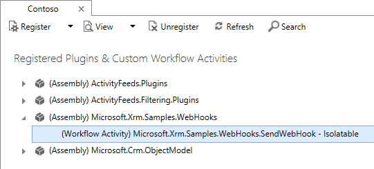 The business entity that triggered the event is available both to the workflow and to custom code that is run from the workflow. As we will see below, both workflows and custom workflow activities can perform additional processing before sending a WebHook, which enables scenarios like filtering when a WebHook should be sent based on privilege or the value of a field.