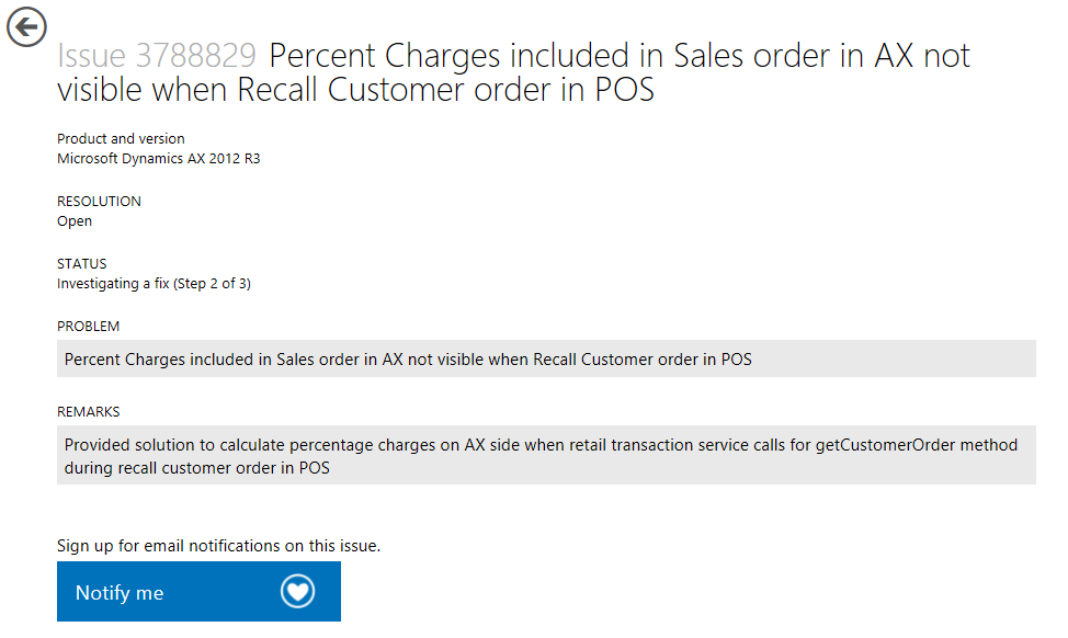 AX2012 support incident created Support Incident is researched and found a code change is required by Microsoft Bug for a hotfix request is created Bug is triaged and accepted, bug request is in a created state