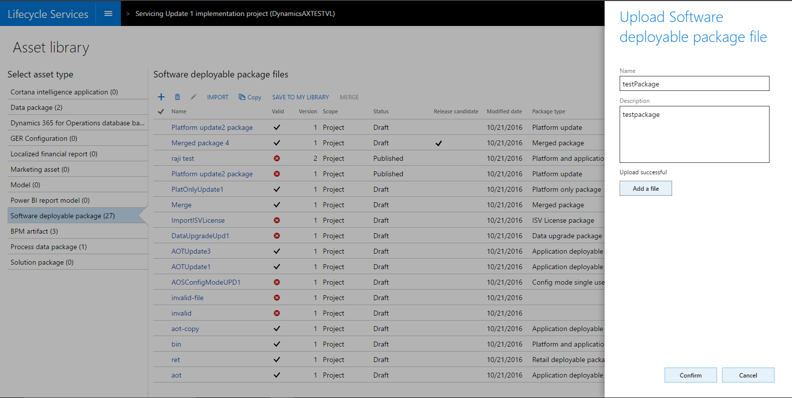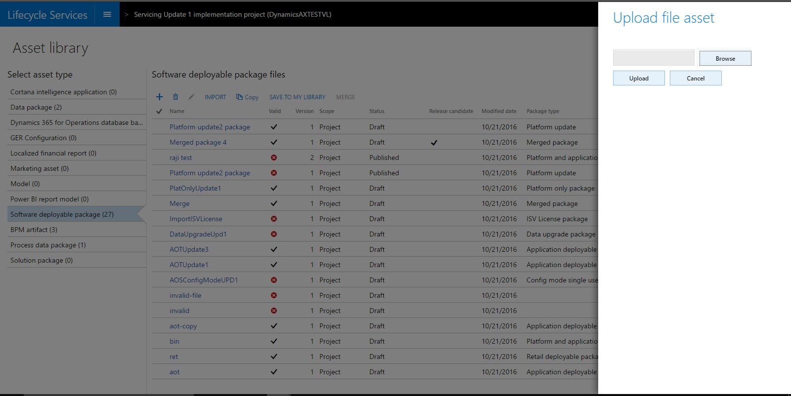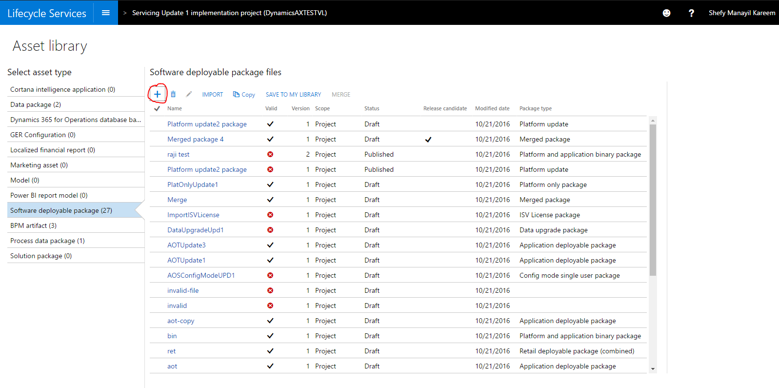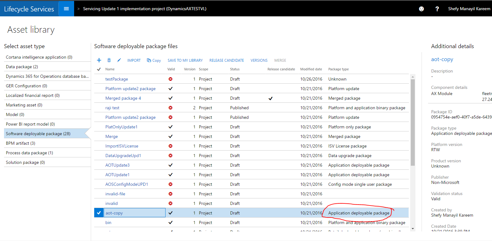 An additional feature was added after the October release of Lifecycle Services. Deployable packages that are imported from the Shared asset library, and have a state of Published, can now be marked as Release candidates after they have been applied to a Sandbox environment.