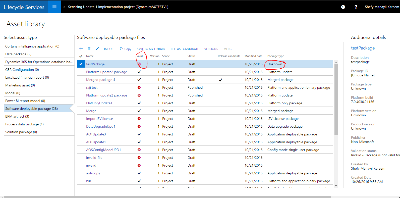 • Packages that are published to the Shared asset library and assigned a state of Published are also marked as not valid, which is incorrect.