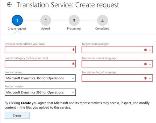 Note: If you have translated files from previous releases, and would like to leverage these existing translations, you must create a separate zip with the legacy source and target resource files. Submit the .zip file as a Legacy files type. The service will use the legacy files to train the translation memory in MT Hub and leverage the translations for your request. This is optional in a translation service request and only Microsoft Dynamics natively supported resource formats are accepted.
