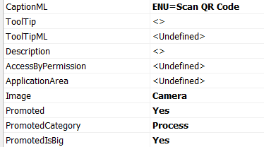 And create an action named “ScanQR” with the following properties and code