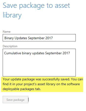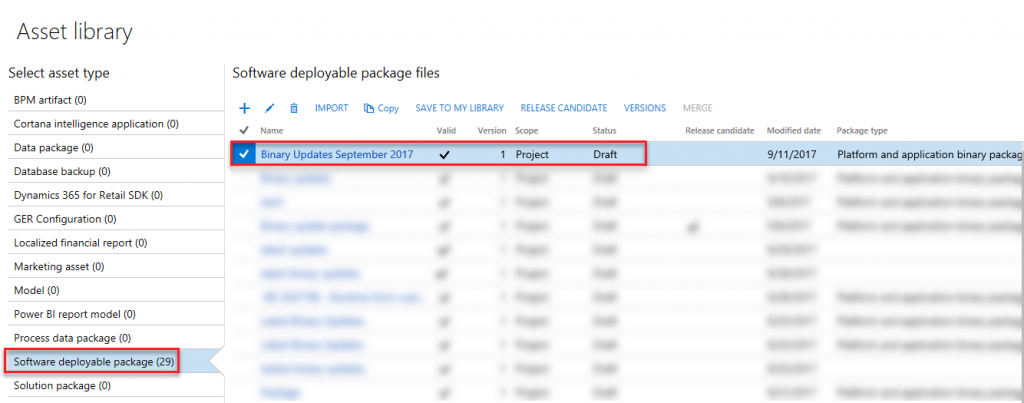 Previously, to save binary updates, you were required to first download the update and then upload it to the project’s Asset Library. In the September release of LCS, you can save binary updates directly from the Update tile to the project’s Asset Library.