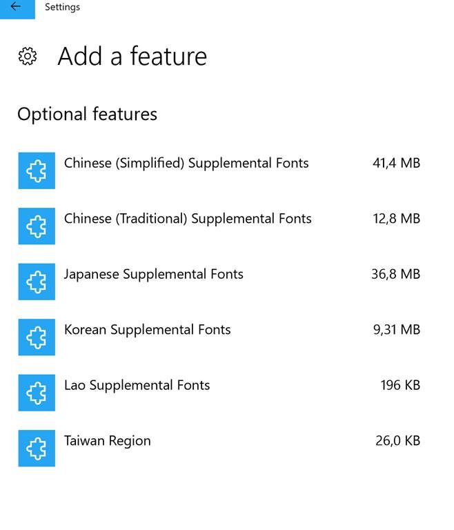 Windows 10 comes with a different, optional, deployment for Chinese and DBCS (Double Byte Character Set) fonts.