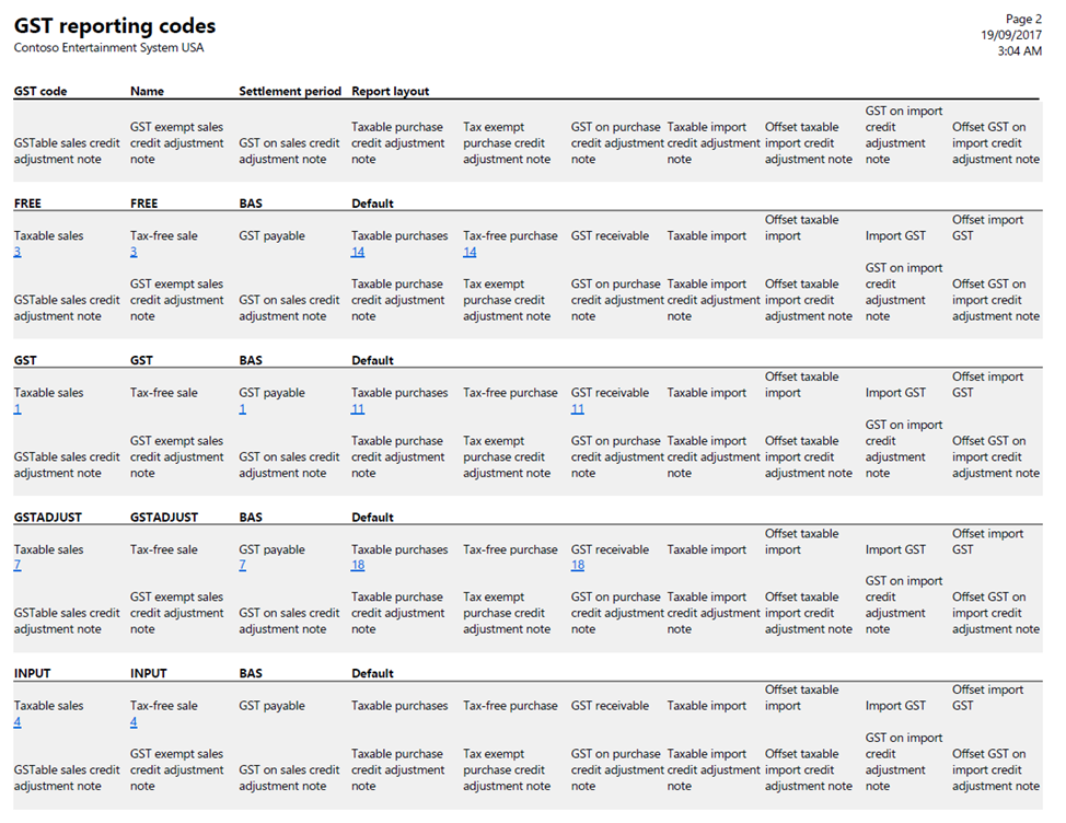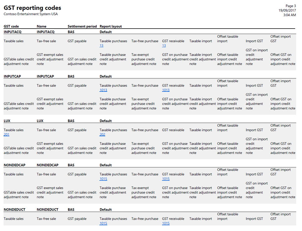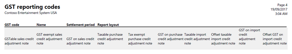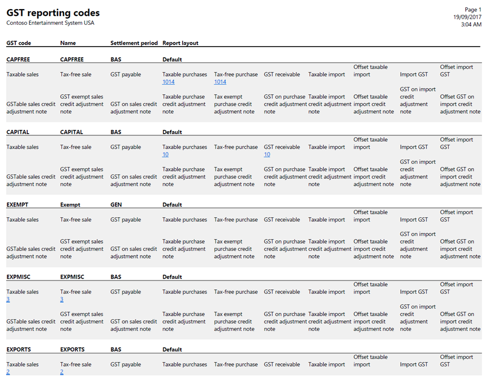 TAX > INDIRECT TAXES > GST > PRINT > GST CODE > PRINT > GST reporting codes
