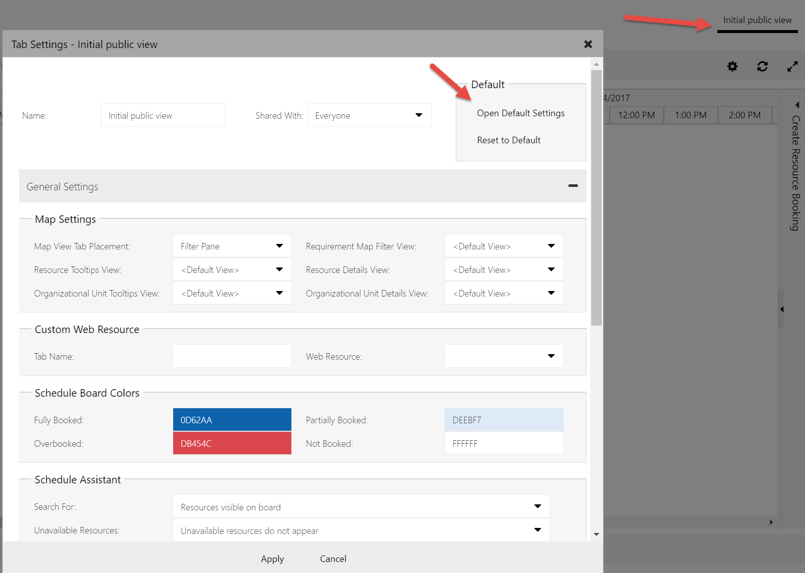 - To modify the schedule board when not using schedule assistant, open up any schedule board to change the queries. If you would like to make a change that applies to all boards in the org, make sure to make the changes on the default schedule board.