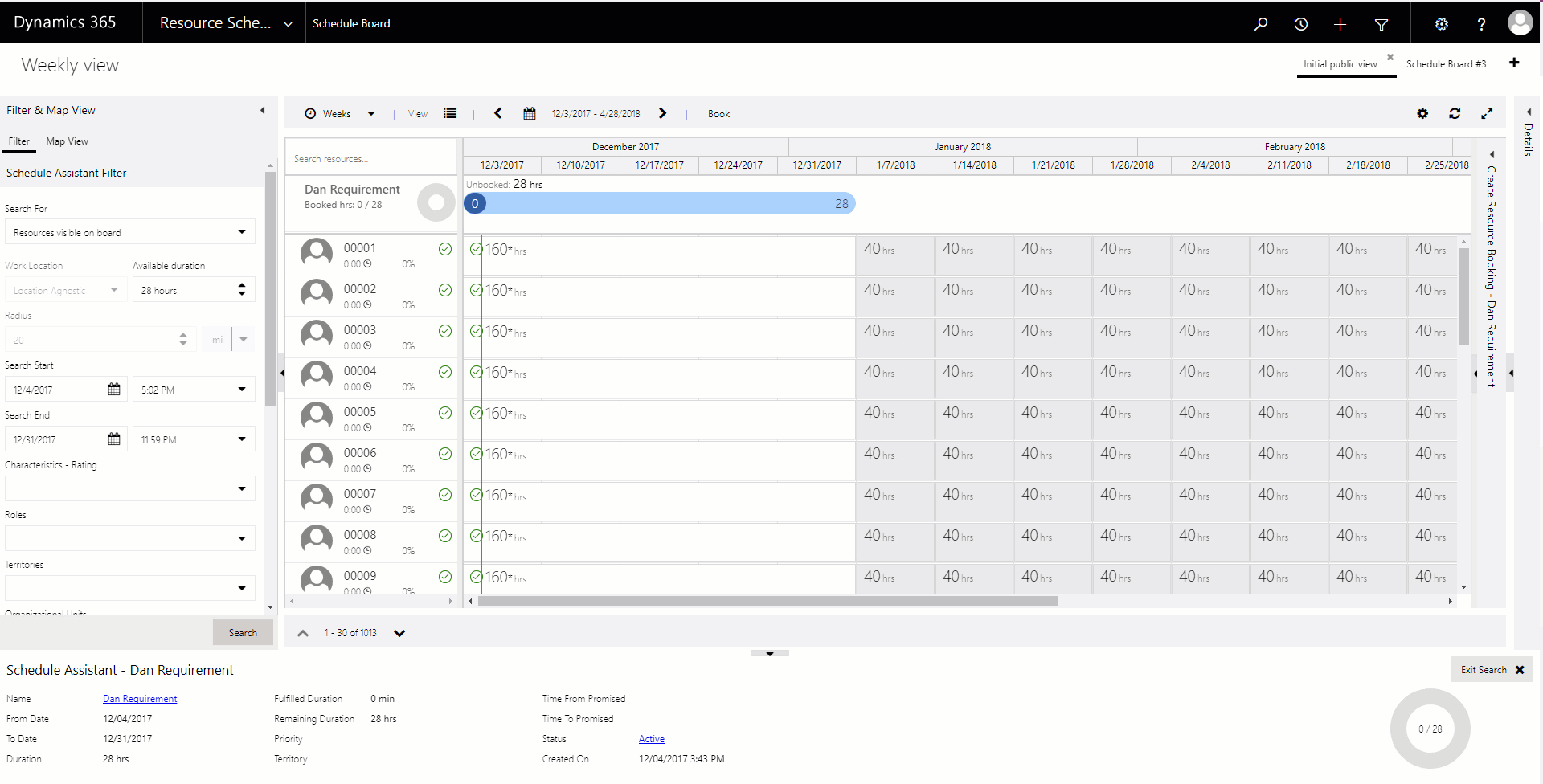 For example, let’s say at a Field Service organization, work orders are typically searched within a 3-day range. Because the range is small, searching for availability across 1000 resources will be fairly quick.