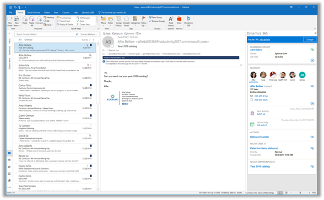 At the beginning of this year, we set out to bridge the gap between Dynamics 365 App for Outlook, the future of Dynamics 365 and Outlook integration, and the legacy Outlook add-in Dynamics 365 for Outlook. We are excited to announce the latest improvements to server-side synchronization and Dynamics 365 App for Outlook as a step in that direction.