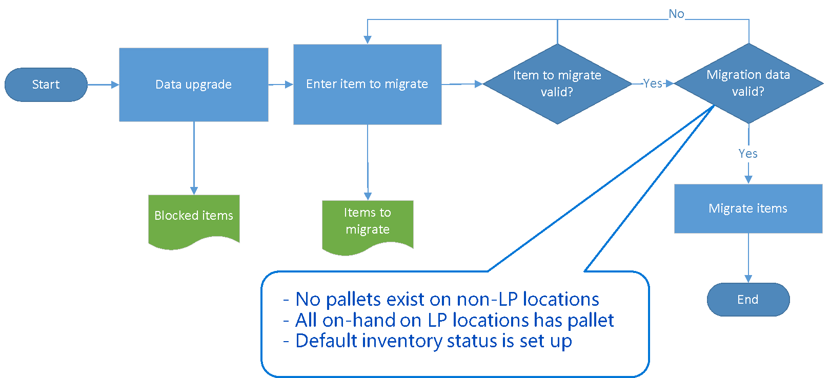 Items that are blocked must be migrated. The blocked items can be viewed in the Items blocked for inventory updates form.