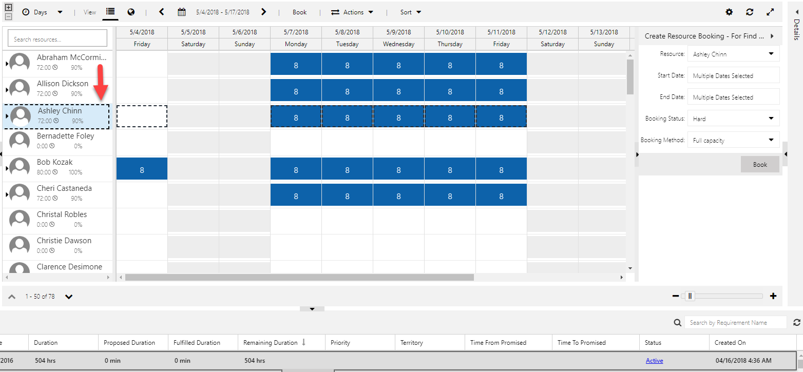 Now, when finding availability on the multiday Schedule Boards, your decision to ignore proposed bookings or to consider proposed bookings will be reflected in the total available hours displayed on the schedule board.