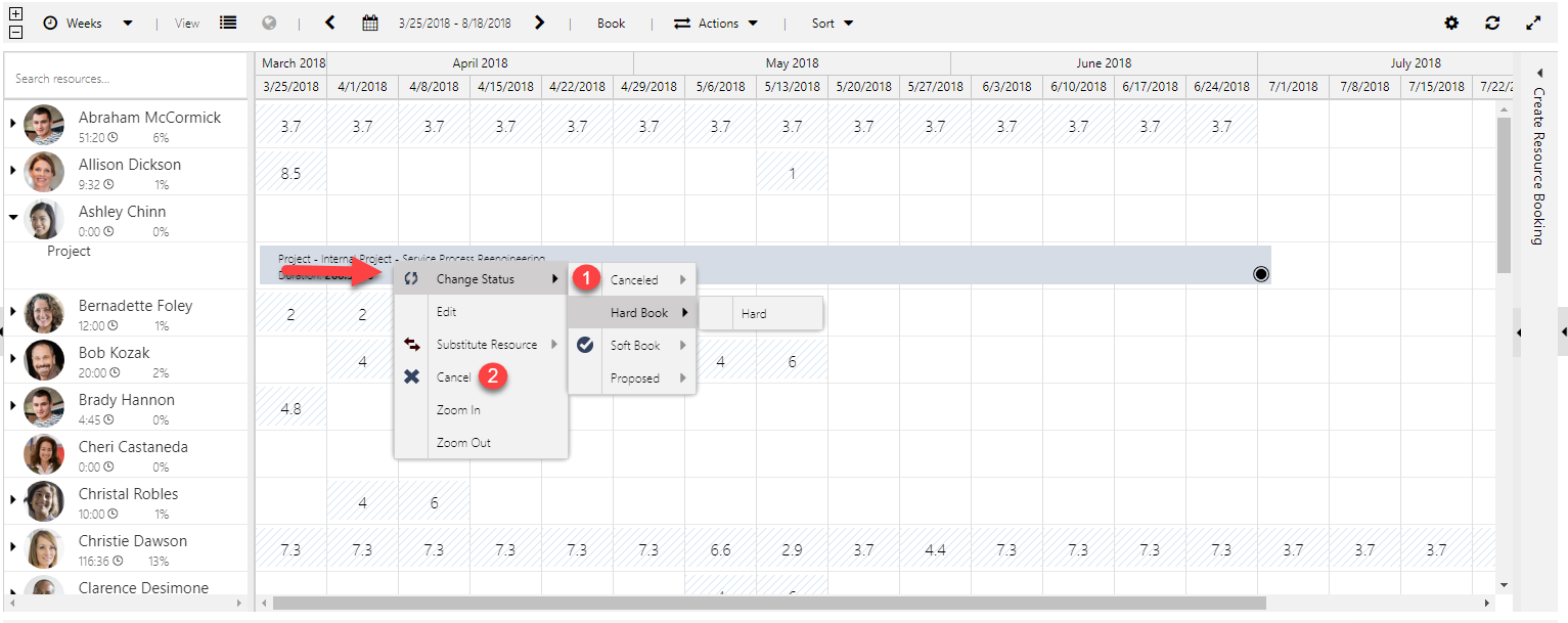 - Don’t worry–you can still use the “hovering book” button or right-click shortcut for the same “quick book” experience you know and love. This will book the resource at the selected time in the default committed status as has been the pattern for a long time.