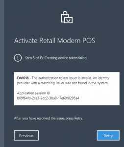 In order to troubleshoot this you will need to look into the Event Viewer logs of the Retail Server that this MPOS is connecting to (HQ or RSSU, depending on your topology) and search for entries referencing providedIssuer and registeredIssuers, like for example: