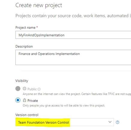 - When you create a new Azure DevOps project, by default there is Git version control. You will need to add a Team Foundation Version Control repository to the Azure DevOps project.